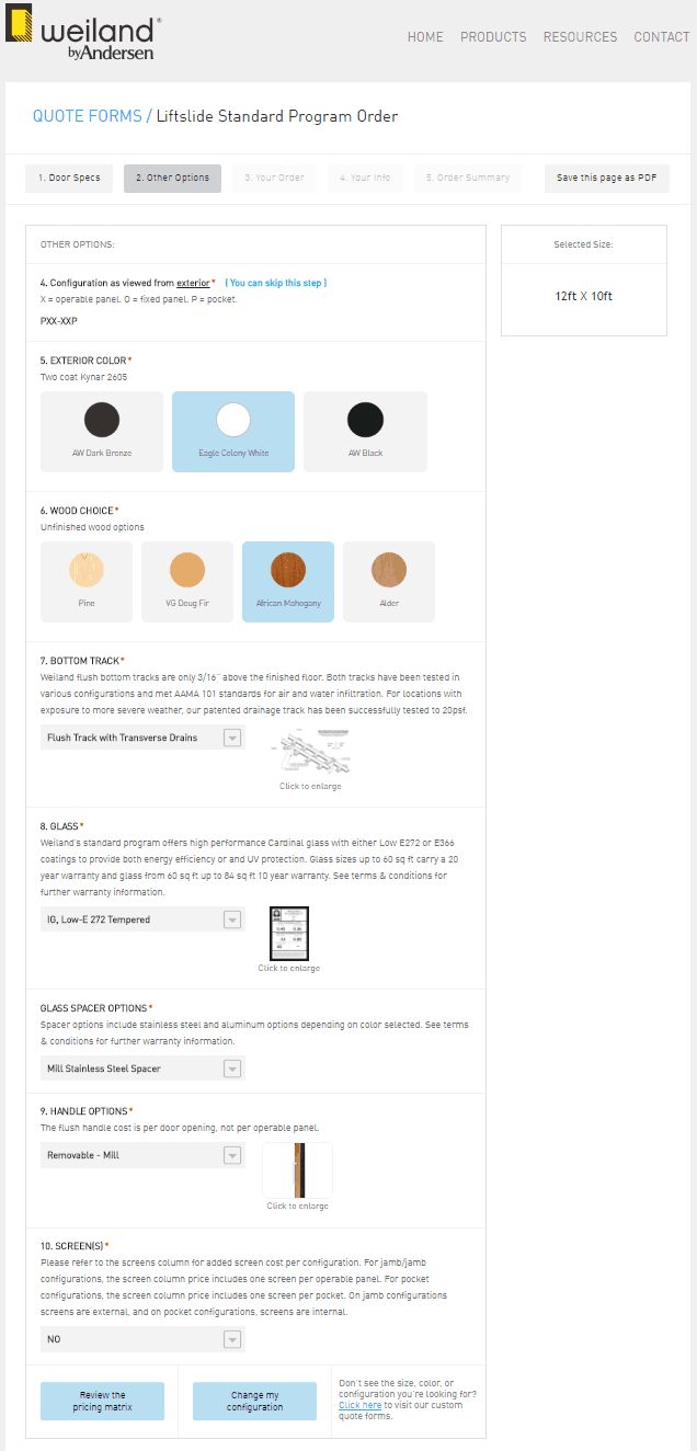 Weiland produces custom sliding doors and windows for high-end architectural projects. The company was looking to create a way for customers to build quotes online, and approached Nextware about building the system.
